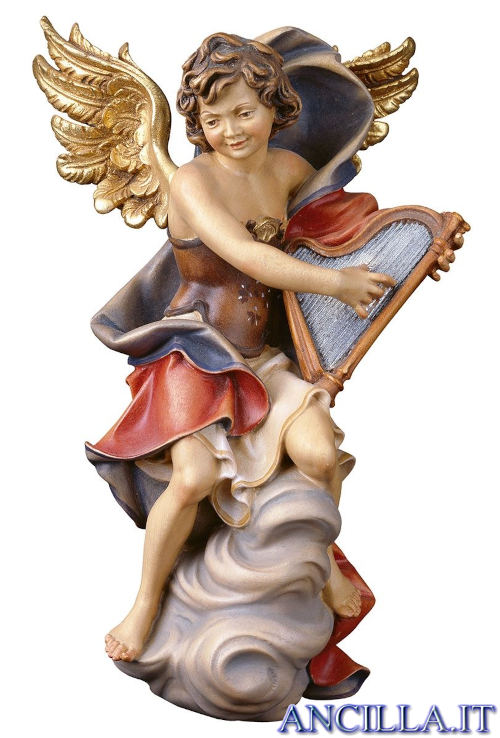 Scultura realizzata in legno d'acero dipinto con colori a olio e dorato in alcuni particolari con foglia oro ossidata.