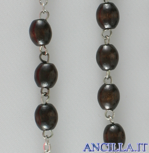 Corona del Rosario rilegata in ottone argentato con grani ovali 6x8 mm in legno liscio palissandro.