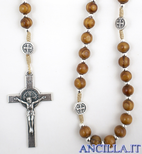 Croce con la medaglia di San Benedetto; una medaglia di San Benedetto è anche su ogni pater.