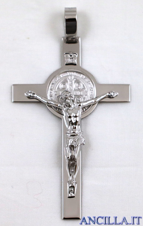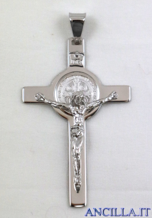 La croce e la medaglia sono in argento 925°/°° rodiato, lucidato a mano, certificato. Il corpo di Gesù è in argento 925°/°°.