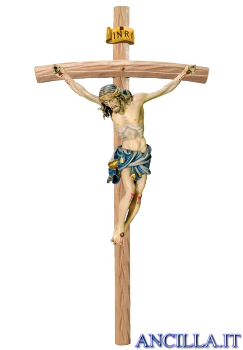 Cristo Raffaello in legno d'acero (o di tiglio per le misure superiori ai 40 cm) dipinto con colori a olio su croce curva chiara.