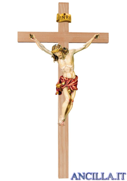 Cristo Raffaello in legno d'acero (o di tiglio per le misure superiori ai 40 cm) dipinto con colori a olio su croce diritta liscia chiara.