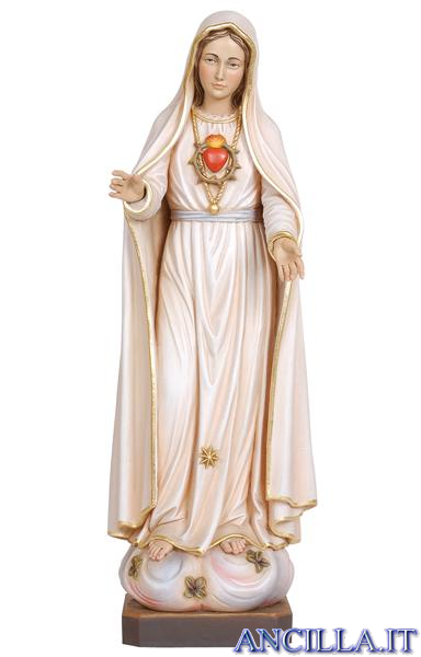 Statua in legno "Cuore Immacolato di Maria" dipinta con colori a olio e dorata con foglia d'oro.