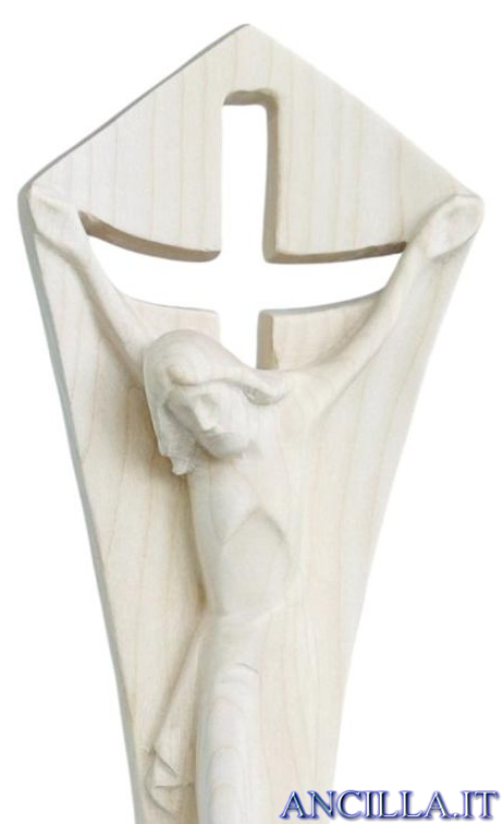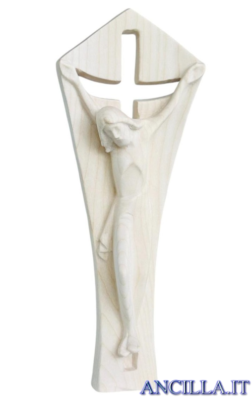Crocifisso "Figlio del Padre" realizzato in legno di frassino. Risaltano le venature autentiche del legno per un effetto caldo e naturale.