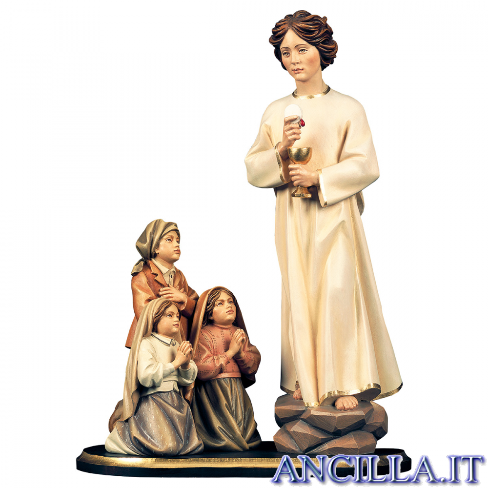 La statua "Gruppo apparizione Angelo della pace del Portogallo" è in legno d'acero (o di tiglio per le misure superiori ai 40 cm), dipinto con colori a olio e dorato con foglia oro ossidata.