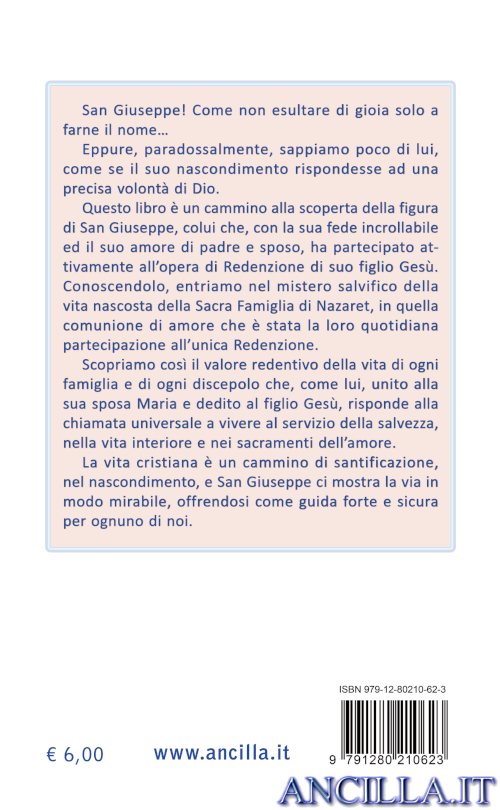 Questo libro è un cammino alla scoperta della figura di San Giuseppe, colui che, con la sua fede incrollabile ed il suo amore di padre e sposo, ha partecipato attivamente all’opera di Redenzione di suo figlio Gesù. Conoscendolo, entriamo nel mistero salvifico della vita nascosta della Sacra Famiglia di Nazaret, in quella comunione di amore che è stata la loro quotidiana partecipazione all’unica Redenzione.