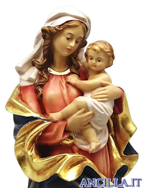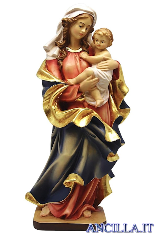 Statua "Madonna del Cuore" realizzata in legno d'acero (o di tiglio per le misure superiori ai 40 cm) e dipinta con colori a olio tinte pastello.