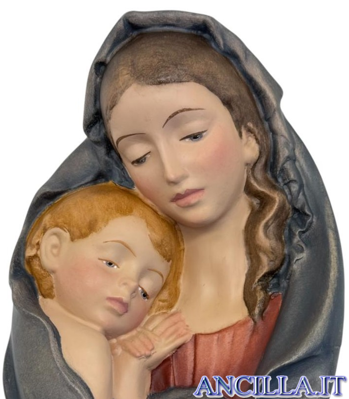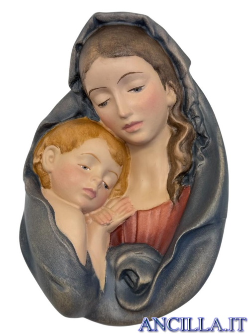 Madonna con Bambino da parete in legno d'acero montano dipinto con colori a olio.