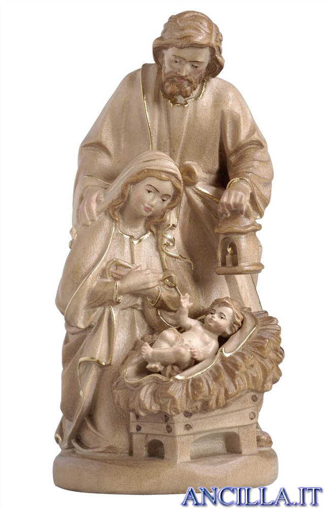 Natività scolpita in un unico pezzo in legno d'acero stagionato e dipinto con 3 colori di tonalità bruna.