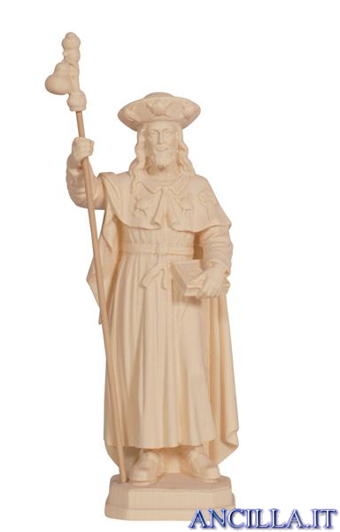 Statua di San Giacomo, figlio di Zebedeo e Maria Salome e fratello di San Giovanni evangelista. Fu testimone dei principali miracoli di Gesù, della sua trasfigurazione sul Tabor e nel Getsemani alla vigilia della Passione. Tra il 42 e il 44 d.C. fu decapitato da Erode Agrippa a Gerusalemme in prossimità della festa di Pasqua. Il sepolcro contenente le sue spoglie, traslate da Gerusalemme in Spagna dopo il martirio, sarebbe stato scoperto al tempo di Carlo Magno nell'814. La sua tomba a Santiago de Compostela dette il nome alla stessa città in cui si trova (Santiago = Sancti Jacobi = San Giacomo) ed è dal Medio Evo meta di numerosi pellegrinaggi da tutto il mondo.